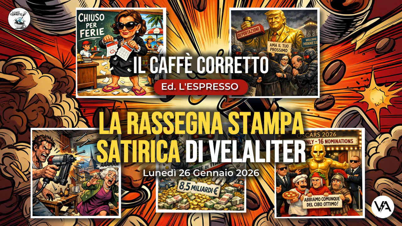 La rassegna stampa satirica di oggi si apre con un dilemma esistenziale: meglio un diploma inutile o uno Spritz fatto bene? Mentre il governo lavora per trasformare gli studenti in stagionali a vita, oltreoceano la carità cristiana diventa motivo di arresto. Tra una sparachiodi usata come argomento di dibattito e l’ennesima figuraccia agli Oscar, il lunedì ci ricorda che la realtà supera sempre la satira, purtroppo.