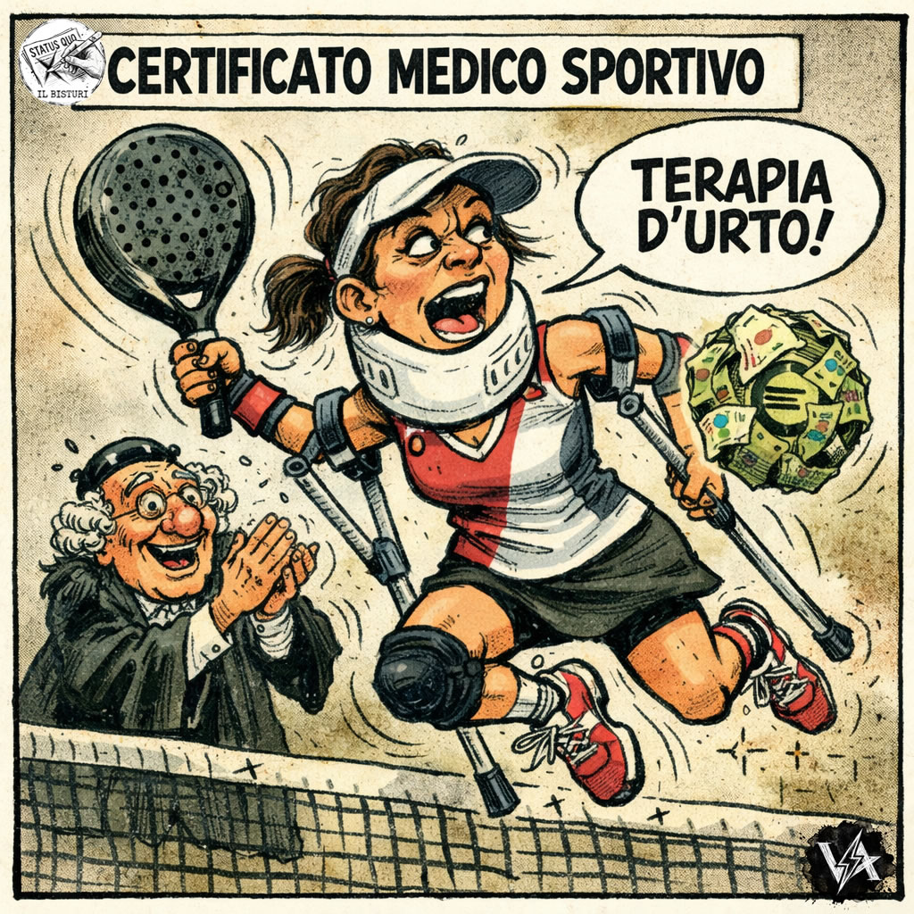 Siamo di fronte al collasso definitivo della medicina del lavoro. Il certificato medico si tramuta in un pass stagionale per il circolo sportivo, mentre l’azienda assume il ruolo di sponsor occulto del torneo. Il Padel cessa di essere uno sport per quarantenni in crisi esistenziale e si eleva a diritto costituzionalmente garantito, finanziato direttamente dai contributi di chi, purtroppo per lui, gode di ottima salute e continua a timbrare il cartellino.