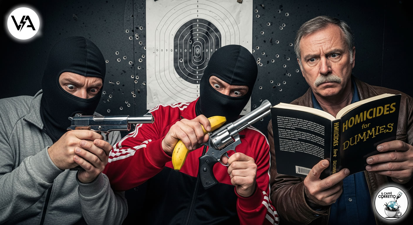 Le forze dell’ordine hanno fermato un padre con i suoi due figli, confermando una tendenza preoccupante: l’affidamento di incarichi di alta responsabilità a team familiari, probabilmente per risparmiare sui costi di trasferta e sui contributi. Una scelta che, se da un lato promuove l’impresa a conduzione familiare, dall’altro produce risultati qualitativamente scarsi. L’incidente solleva questioni urgenti per il settore: è necessario introdurre un sistema di certificazione per killer professionisti? Forse un “patentino da sicario” con esami di mira e test psico-attitudinali? Le agenzie per il lavoro interinale potrebbero creare una divisione “Crimine” per fornire personale qualificato on-demand, garantendo standard minimi di efficienza e riducendo il rischio di spiacevoli errori sul posto di lavoro.