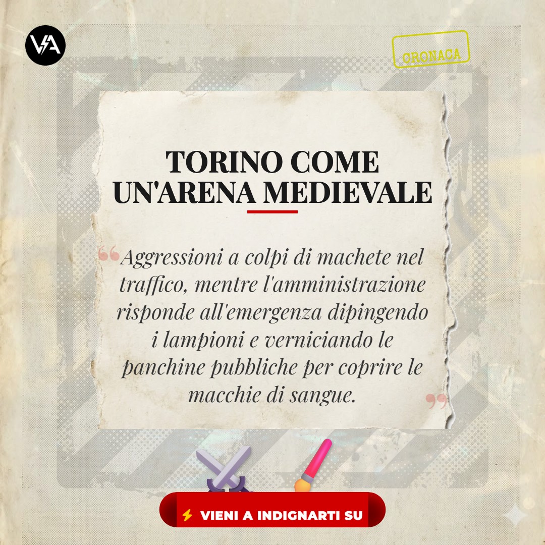 IL TEATRO DELL’ASSURDO: Le strade del capoluogo piemontese si sono trasformate improvvisamente in un set di un film sui gladiatori, con un uomo assalito a colpi di machete in corso Giulio Cesare in pieno giorno, per la gioia dei passanti traumatizzati.