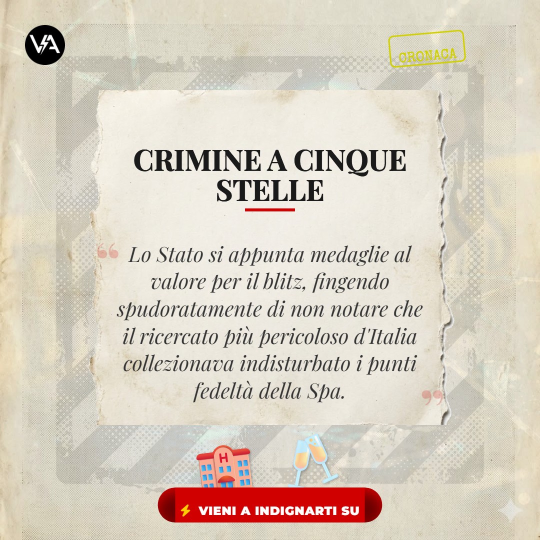 L’ALIBI ISTITUZIONALE: I telegiornali e i funzionari statali celebrano con enfasi marziale l’infallibilità dell’intelligence italiana. Un tripudio di conferenze stampa che tenta di nascondere l’imbarazzo siderale di un sistema di controllo talmente bucato da permettere ai grandi capi dell’illecito di collezionare punti fedeltà negli alberghi extralusso senza che nessuno se ne accorga per mesi.