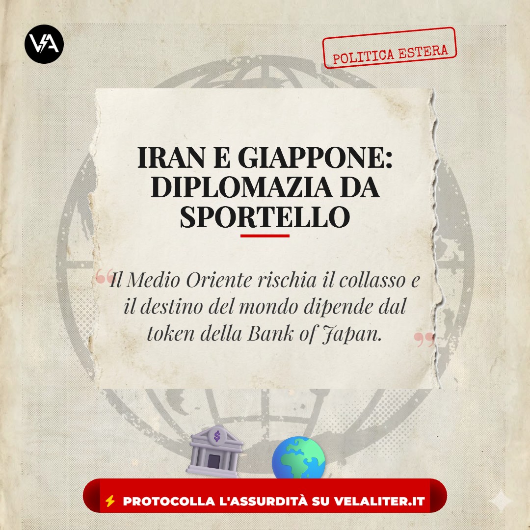 Le relazioni internazionali tra il regime di Teheran e l’Occidente passano ora ufficialmente per i server della Bank of Japan. L’architettura globale della deterrenza è stata sostituita da un banale blocco dei bonifici internazionali, dimostrando che la pace si ottiene non con le diplomazie, ma congelando i conti correnti. Le alte sfere della politica globale sono state declassate a semplici impiegati di sportello. Il Medio Oriente ora dipende dall’orario di chiusura delle filiali nipponiche.