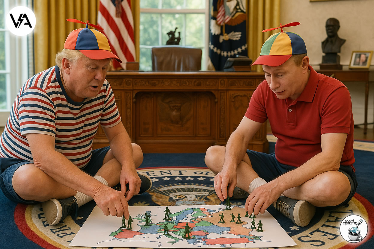 L’approccio è, a suo modo, geniale. Perché perdere tempo con concetti obsoleti come l’autodeterminazione dei popoli e il diritto internazionale, quando si può risolvere tutto con una partita a Risiko? La proposta di Putin a Trump per il Donetsk suona esattamente così: “Attacco la Kamchatka con tre carrarmatini”. La reazione di Trump, entusiasta all’idea di “fare un accordo”, conferma che il mondo è ormai un grande tabellone di gioco per leader con l’ego ipertrofico e la soglia di attenzione di un bambino di cinque anni. La cosa più preoccupante è che, a differenza del Risiko, qui i carrarmatini sono veri e le persone muoiono sul serio. Ma questi sono dettagli trascurabili di fronte alla bellezza di un “deal” ben riuscito.