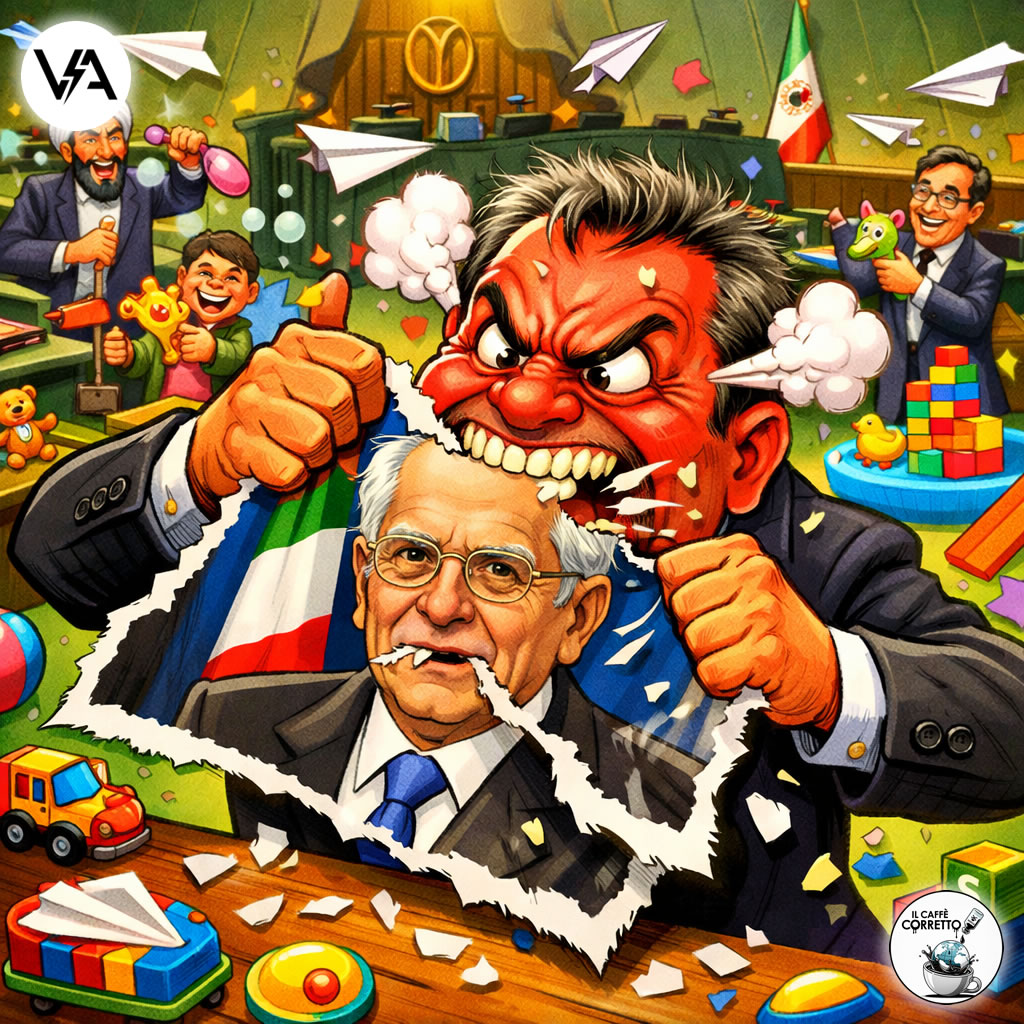 Nel cuore dell’emiciclo di Teheran, un deputato visibilmente alterato ha deciso che il modo migliore per manifestare il proprio dissenso verso le politiche occidentali non fosse un’articolata mozione parlamentare o il richiamo di un ambasciatore, bensì un attacco fisico e frontale contro una fotografia. A favor di telecamera, ha afferrato una gigantografia di Sergio Mattarella e l’ha ridotta in coriandoli, gesticolando e urlando anatemi. Un gesto che voleva essere minaccioso e solenne, ma che ha finito per somigliare terribilmente alla crisi di nervi di un bambino a cui hanno appena spento la PlayStation prima del salvataggio.