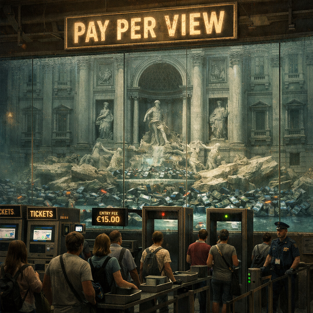 L’introduzione del Ticket per la Fontana di Trevi segna uno spartiacque nella storia del turismo romano (e probabilmente nella storia dell’avidità amministrativa). Il Comune ha ufficializzato la decisione: per accedere alla passerella e ammirare il capolavoro barocco, bisognerà pagare. L’acqua è pubblica, ma lo sguardo è diventato un servizio a pagamento. È la “Gabella 2.0”: moderna, digitale e assolutamente iniqua.