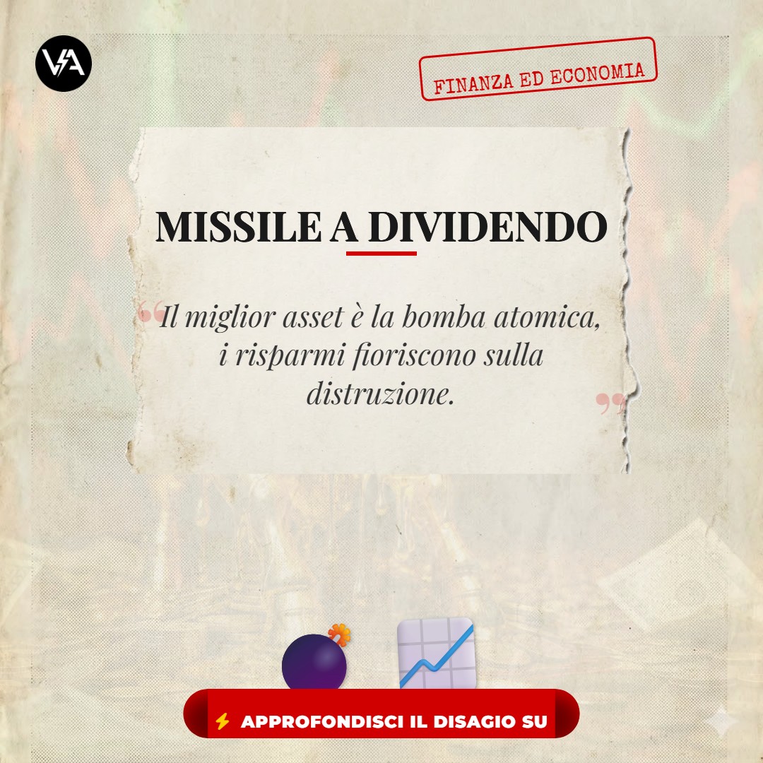 L’ALIBI ISTITUZIONALE: I broker in doppiopetto giustificano freddamente il boom come una fisiologica ricerca di stabilità per i portafogli azionari. Dopotutto, niente rassicura un investitore quanto la certezza matematica che i propri sudati risparmi finanzieranno la distruzione sistematica di qualche paese lontano, trasformando gli scoppi dei missili in succulenti dividendi trimestrali.