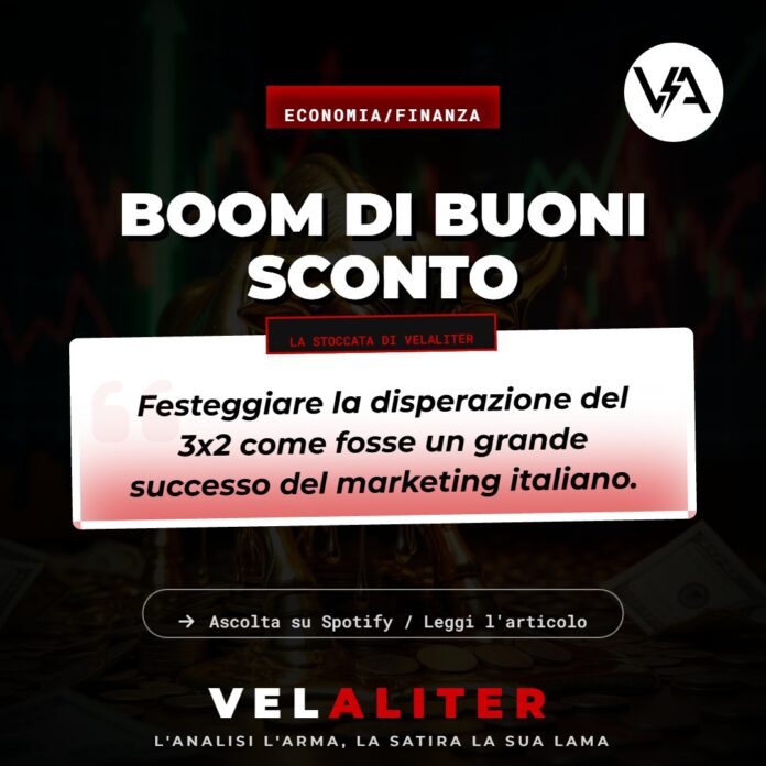 Il Paradosso: C’è decisamente qualcosa di grottescamente deprimente e distopico nell’esaltare come un “brillante successo delle strategie di marketing” quello che è, in modo palese e inequivocabile, un disperato sintomo di povertà strisciante e impoverimento del ceto medio. Festeggiare il record nazionale dei buoni sconto è esattamente come brindare allegramente al record di presenze nelle mense della Caritas: un indicatore inequivocabile del fatto che i salari reali sono ormai fermi all’era del Pleistocene, mentre i prezzi del tonno in scatola rivaleggiano arrogantemente con le quotazioni del caviale russo. Abbiamo silenziosamente sostituito la sacrosanta dignità di un potere d’acquisto reale con l’adrenalina fittizia e pietosa del “prendi 3 e paghi 2”.