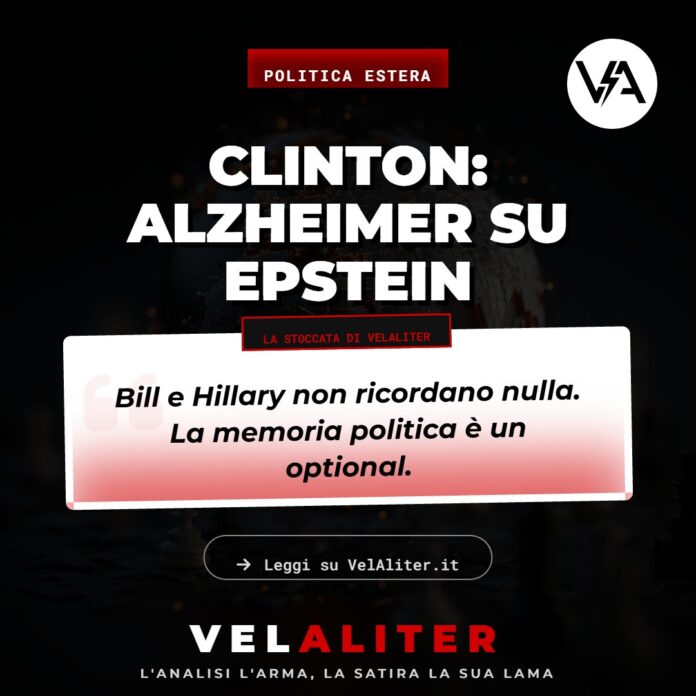 Il Fatto: Momento nostalgia al Congresso USA, dove Bill e Hillary Clinton hanno testimoniato sul caso Epstein. La performance è stata magistrale: la quantità di “non ricordo”, “non rammento” e “vuoto di memoria” pronunciata in quell’aula ha superato ogni record storico. Due delle menti più brillanti della politica mondiale, capaci di citare a memoria trattati del 1994, improvvisamente non ricordano nemmeno se hanno mai preso un aereo privato con un miliardario pedofilo.