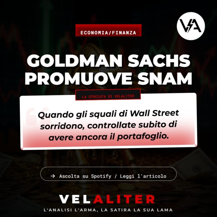 Il Fatto: Gli infallibili oracoli della finanza globale si sono pronunciati dai loro grattacieli di vetro. La potentissima banca d’affari americana Goldman Sachs ha rivisto al rialzo il proprio giudizio sul colosso energetico italiano Snam, portandolo dal prudente e neutrale “Neutral” all’entusiastico e perentorio “Buy” (comprare assolutamente). Un endorsement pesantissimo e mirato che ha prevedibilmente scatenato gli istinti e gli appetiti degli investitori grandi e piccoli, facendo schizzare immediatamente il titolo della società verso l’alto nel listino di Piazza Affari in una mattinata di euforia speculativa generale.
