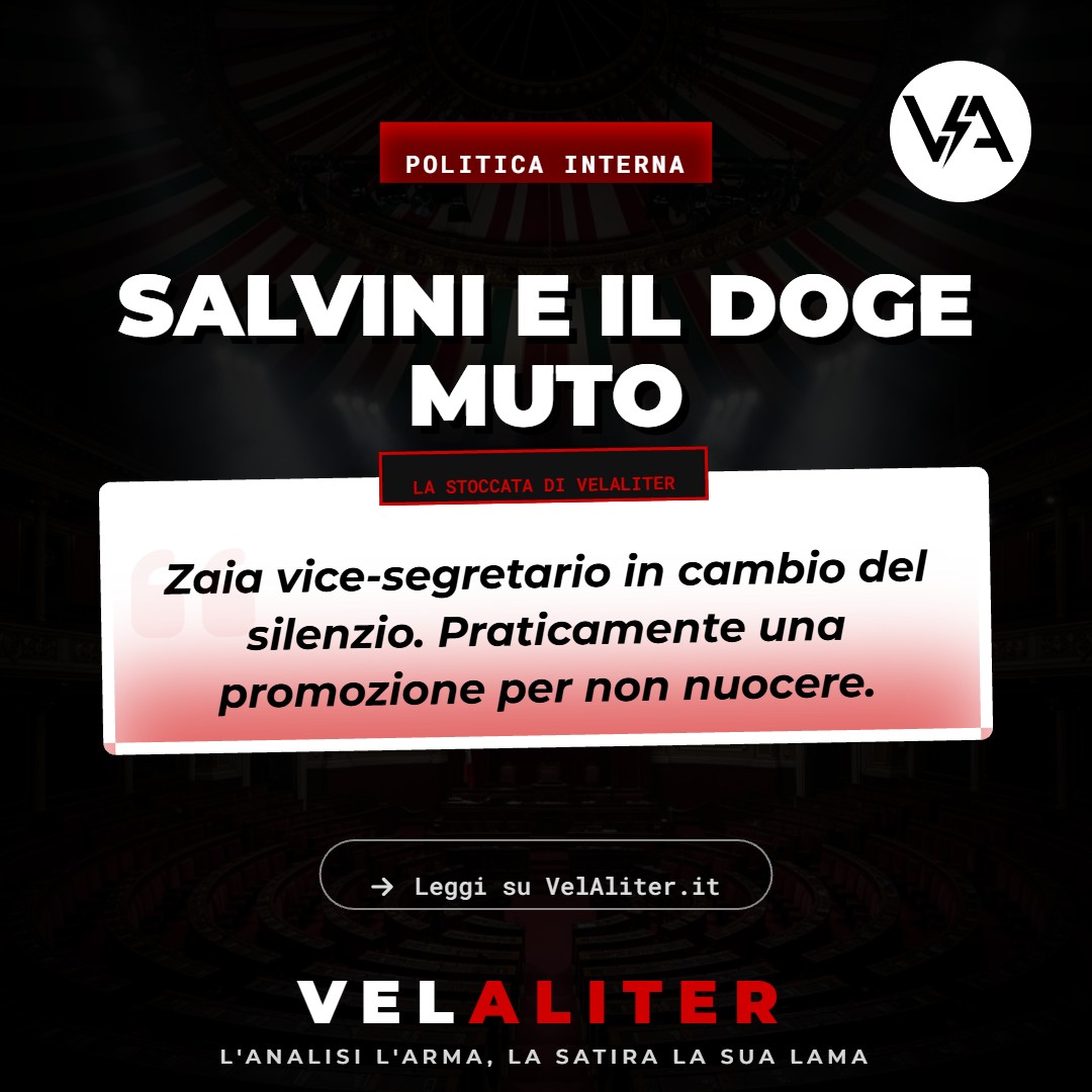 Il Paradosso: La democrazia interna della Lega funziona come il calciomercato: si scambiano ruoli e visibilità non in base al merito o al consenso, ma per evitare che qualcuno diventi troppo popolare. Zaia viene “promosso” per essere neutralizzato, come quei manager scomodi che vengono nominati “Vice Presidente Onorario delle Fotocopiatrici” pur di toglierli dai piedi.