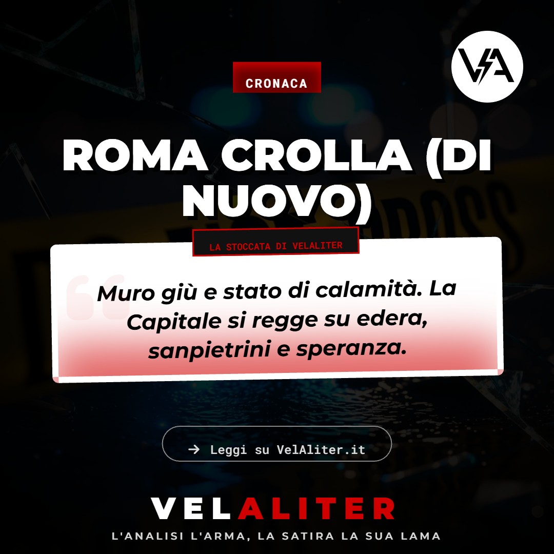 Il Paradosso: A Roma, il crollo di un muro fa notizia, ma il vero miracolo è che il resto della città stia ancora in piedi. La Capitale si regge su un delicato equilibrio di sanpietrini instabili, liane di edera e speranza divina. Ogni volta che cadono tre gocce d’acqua, scatta l’allarme nazionale, come se la pioggia fosse un’invenzione moderna e imprevedibile, tipo l’intelligenza artificiale o il bon ton sui social.