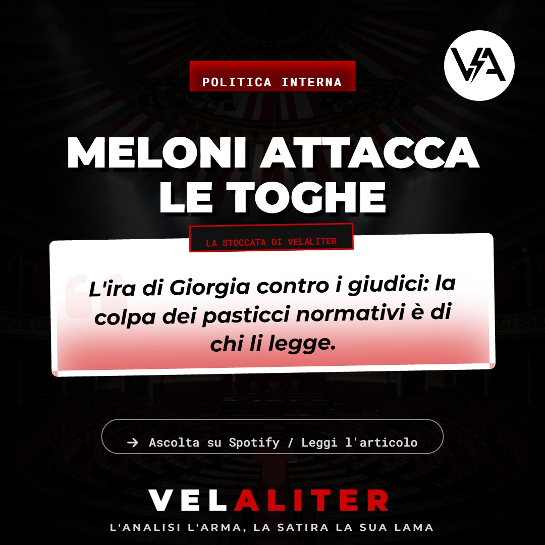 Il Paradosso: È spettacolare notare come, ciclicamente e inesorabilmente nella storia della nostra Repubblica, chi verga le leggi in modo approssimativo o in aperto conflitto con il diritto internazionale dia poi la colpa a chi quelle leggi deve interpretarle e validarle. Se un decreto si schianta contro la Costituzione o le direttive europee, per la narrazione politica il problema non è la norma scritta male o pensata in fretta per i sondaggi, ma il magistrato guastafeste. Meloni vorrebbe in pratica che la normativa sui diritti umani fosse gestita come un limite di velocità sulla tangenziale: un vago e fastidioso consiglio che il conducente può allegramente ignorare per arrivare prima a destinazione senza prendere multe.
