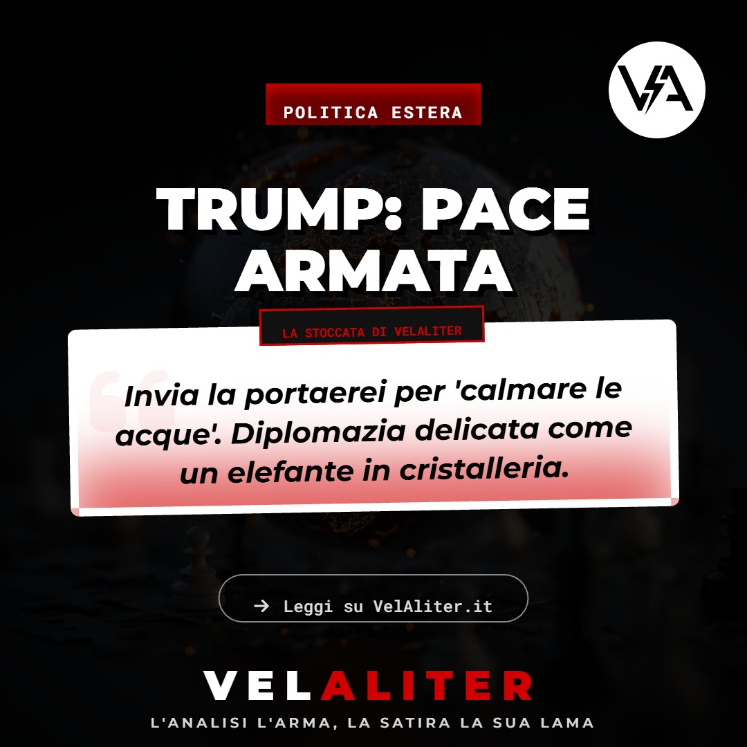 Il Fatto: Donald Trump, nel suo stile sobrio e misurato, ha ordinato alla portaerei USS Gerald R. Ford di fare rotta verso il Medio Oriente per “calmare le acque” con l’Iran. Niente dice “vogliamo la pace e il dialogo” come parcheggiare una città galleggiante armata di testate nucleari e caccia bombardieri nel giardino del vicino di casa che ti sta antipatico.
