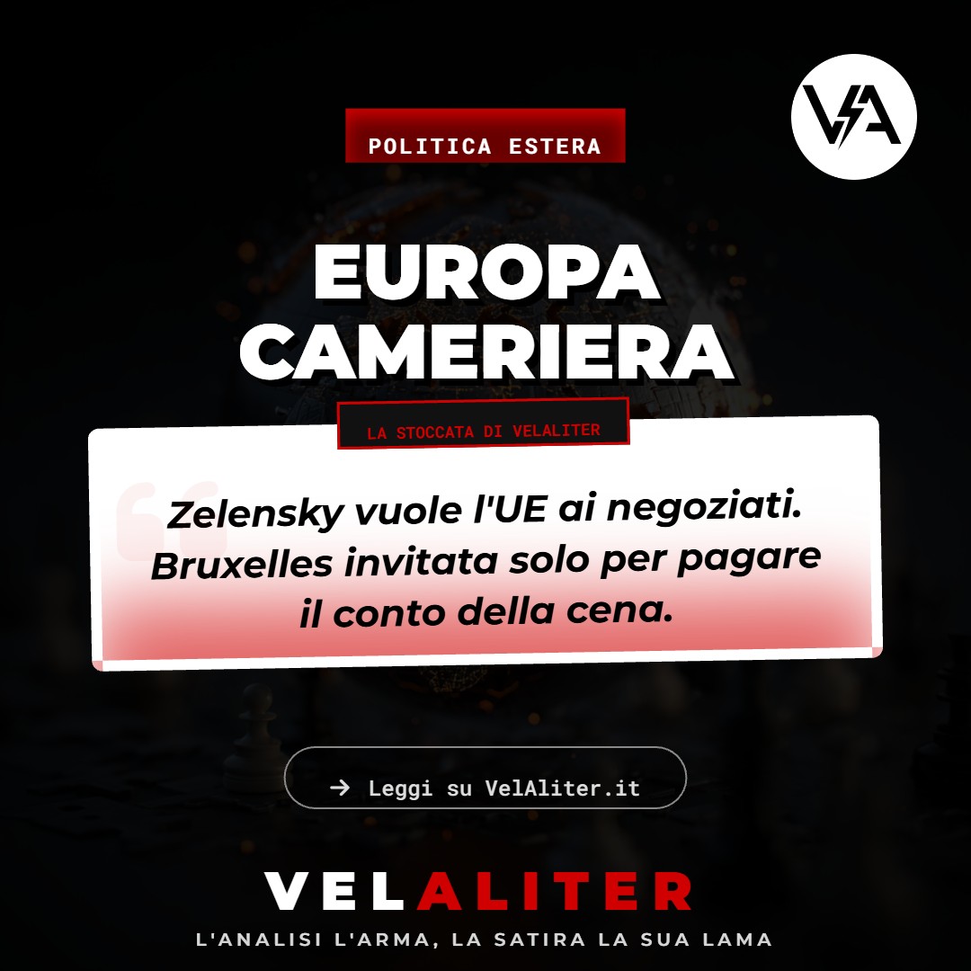 Il Fatto: Il Presidente ucraino Zelensky ha lanciato un monito chiaro: escludere l’Europa dai futuri negoziati di pace sarebbe un errore madornale. Secondo Kiev, l’UE non può limitarsi a fare da bancomat per la ricostruzione o da fornitore di armi, ma deve sedersi al tavolo dei grandi. Un appello che suona un po’ come quello del cugino sfigato che vuole decidere la musica alla festa di capodanno, mentre i buttafuori (USA e Russia) stanno già decidendo a che ora chiudere il locale.